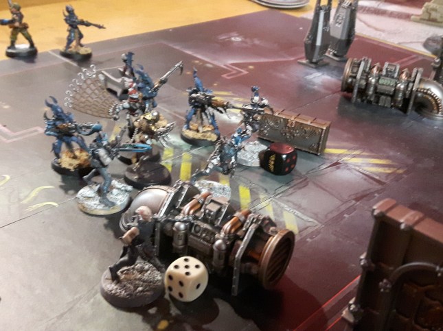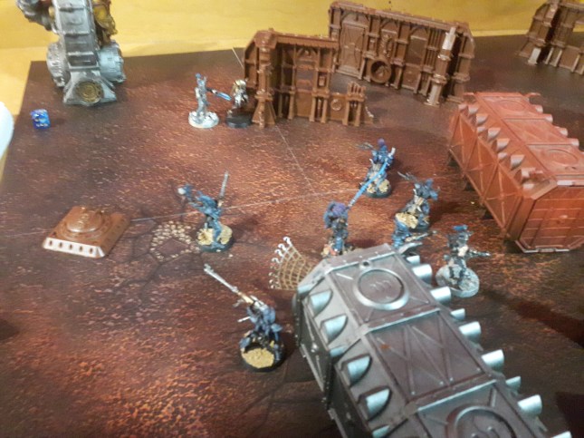The general idea was to this time keep my Sybarite out of harm’s reach and have him generate command points instead of sending him off towards the enemy’s guns. I also skipped on Kabalites wherever possible in favour of Wyches: provided I remembered to charge them from out of LOS, I could not only get into the enemy’s face nice and early, but also negate a lot of their firepower by tying them up in combat (and, hopefully, stabbing them dead).