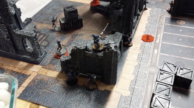 -Positioning is everything in Kill Team, as on turn 1 my dark lance had no line of sight to anything, and anything that I wanted to move around thos corridors in the centre was struggling to get into line of sight of that flamer Marine.