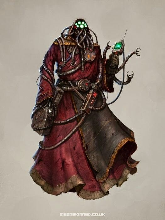 One of the Techpriests stepped forward, and introduced himself as Magos Durthan Sorrax, a prime-adjunct of one of the many manufactoria in Novantis. Sorrax revealed that he and his fellows had heard of Andromeda and her unrestrained interest in AI, and revealed that they were part of a larger group called the Kabanites, a sect that believed in locating and utilising artificial intelligences and other pre-Dark Age technology proscribed by the Mechanicus. Sorrax had heard that Andromeda was not only interested in uncovering old artificial intelligences, but had managed to become part of a Rogue Trader crew, and so he made a proposition to her: the Kabanites were in the Kerberus Sector searching for a long-lost device called the Incunabula, believed to be a digitised repository of pre-Dark Age knowledge. If, during her travels, Andromeda discovered any clues to its whereabouts– or indeed, found its actual location, then Sorrax and his brethren would not only be willing to share resources and information with her, but he would also be willing to induct her into their order, and thus give her access to all of the hidden knowledge and secrets that they had uncovered.