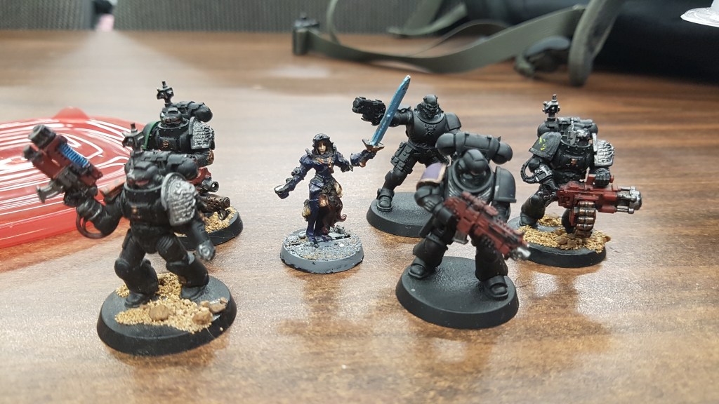 In the third round, we had another set of paired missions to do. In the first, the Xenos side was attempting to assassinate the Leaders of the Truce side– each leader essentially used a relevant profile from the faction in question, armed with the equivalent of a bolt pistol, but only having one melee attack. In my case, Inquisitor Zao was going to be using the stats of a Deathwatch Sergeant (and to be fair, she IS in power armour). The objective was simple: keep her alive until the end of the game.